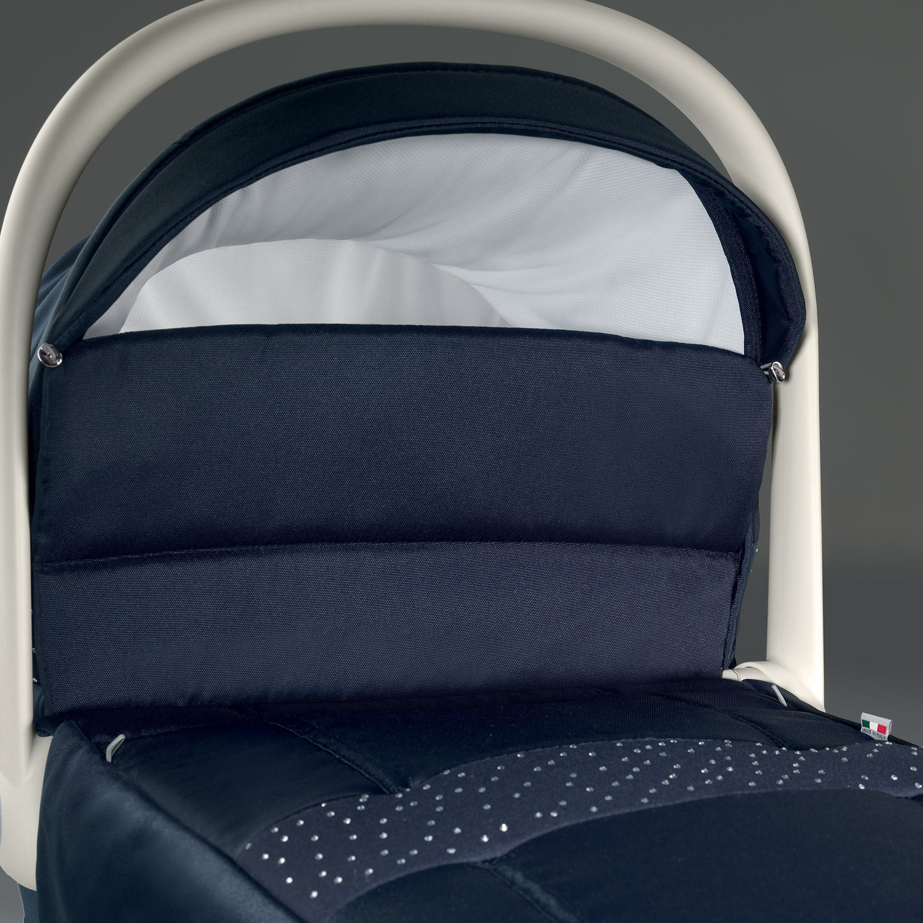 Коляска 3 в 1 Cam Minu Teddy Crystal - полный модульный набор 3 в 1, включающий в себя люльку, прогулочный блок и автокресло группы 0+, которые попеременно заменяются на облегчённом, но прочном алюминиевом шасси и обеспечат новорожденного на несколько лет вперёд всеми необходимыми транспортными средствами для маленького пассажира. Особую элегантность при общей практичности комплекту придаёт белоснежный цвет шасси, складывающемуся в компактную трость (в том числе с прогулочным блоком, установленным в любую из сторон - лицом к дороге или от неё) и тематические аппликации с медвежатами, выполненные из кристалликов.