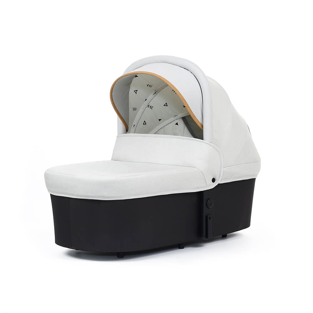 Люлька и прогулочный блок имеют вместительные внутренние габариты, что позволяет комфортно себя ощущать даже крупным деткам. Съемные модули оснащаются глубокими капюшонами и утепленными накидками на ножки. Люлька обладает натуральным хлопковым покрытием внутри. Прогулочный блок является реверсивным, оснащается пятиточечными ремнями безопасности с мягкими плечевыми накладками. Съемный поручень обит мягкой эко-кожей. Подножка и спинка блока могут регулироваться по высоте.