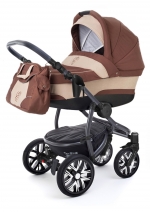 Прочный облегчённый каркас дополнен каучуковыми непробиваемыми колёсами со спицами. Пружинная система амортизации обеспечивает коляске плавный ход по любому грунту. Рама дополнена вместительной металлической корзиной-поддоном, куда можно положить детские вещи и сумки с продуктами. На шасси можно установить люльку или автокресло модельной линии Esspero. Коляской просто управлять благодаря эргономичной родительской ручке, обтянутой мягким нескользящим материалом.