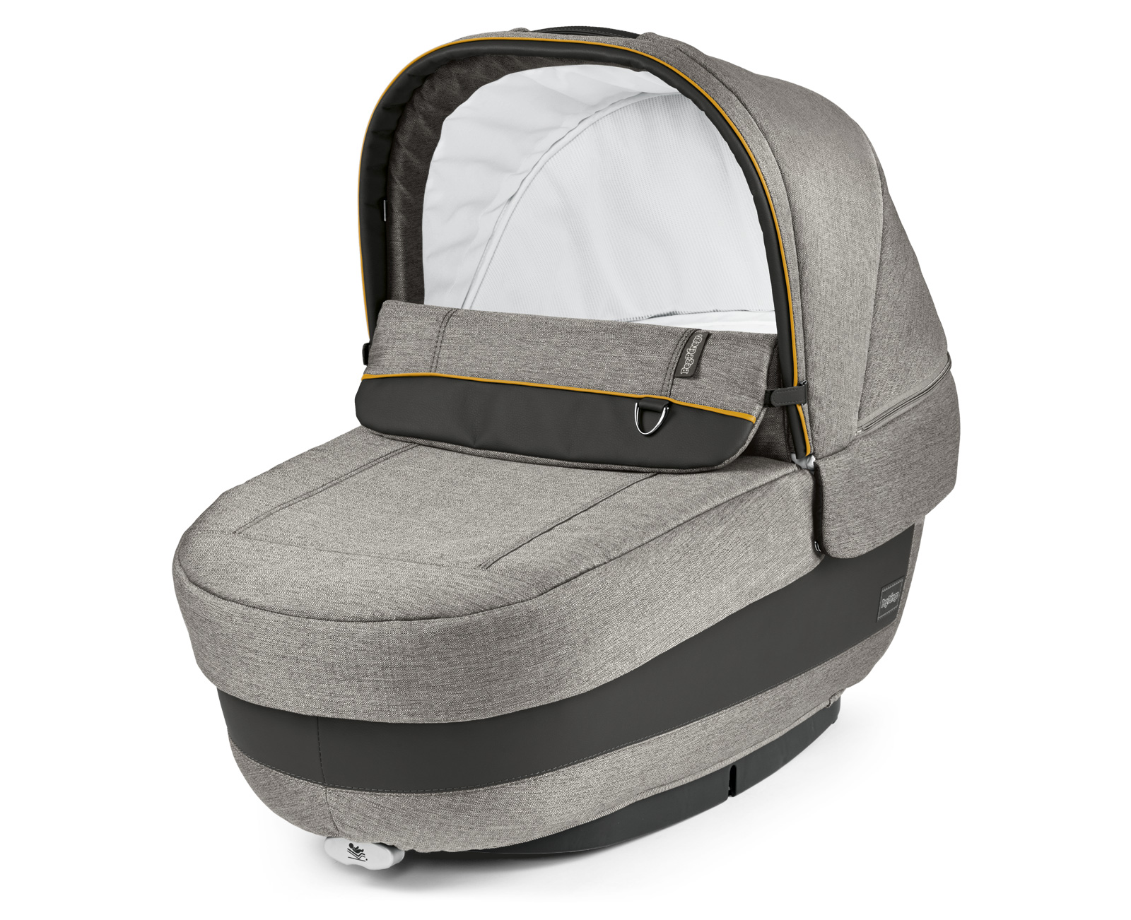Люлька выполнена из ударопрочного полипропилена, имеет жёсткое ортопедическое дно, что способствует формированию правильной осанки младенца. Конструкция реверсивно устанавливается на шасси, благодаря системе Ganciomatic процесс займёт всего лишь несколько секунд. Модель можно использовать как кроватку, качалку, переноску. В просторной люльке малышу будет комфортно в любую погоду. Гипоаллергенная обивка не пропускает влагу и солнце. Система циркуляции воздуха All Seasons позволяет обеспечить кроху свежестью и прохладой в жаркие дни. В панорамном капюшоне есть родительское окошко, карман для необходимых в дороге мелочей.