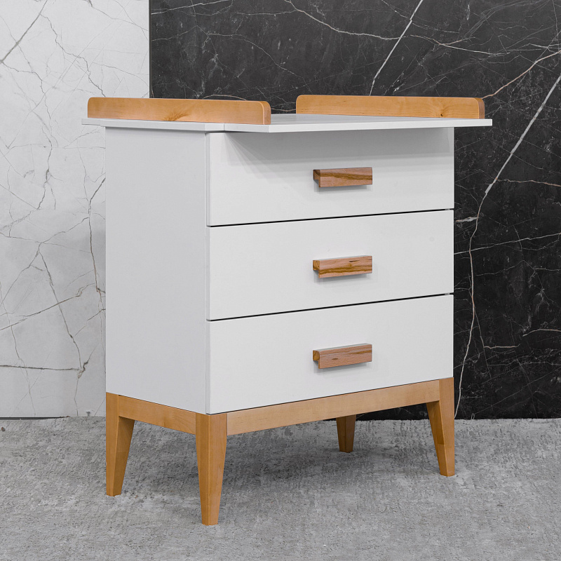 Terra - это функциональный комод со съемным пеленальным столиком (приобретается отдельно) в скандинавском стиле, который станет идеальным решением для любого современного интерьера. Его элегантный дизайн гармонично сочетается с практичностью, а каркас и фасады, выполненные из высококачественного ЛДСП, обеспечивают долговечность и легкость в уходе.