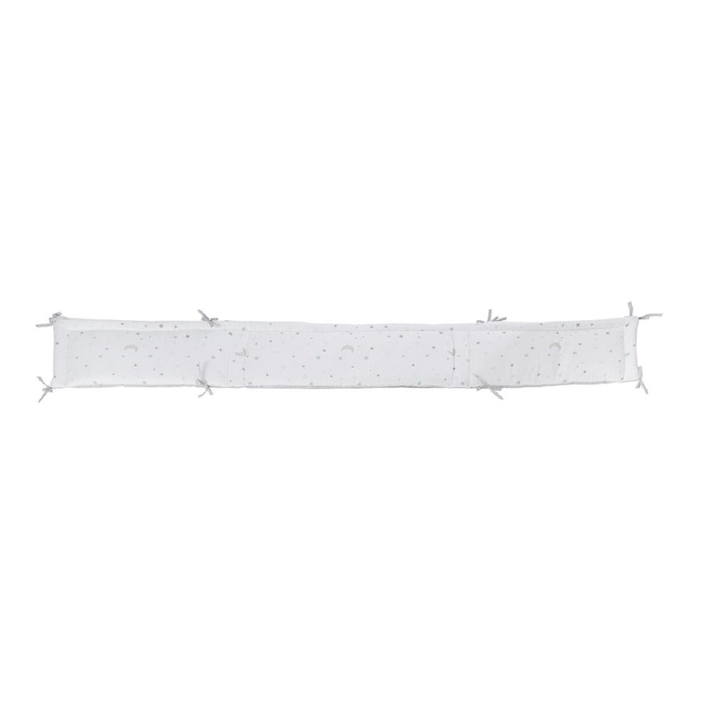 Бампер с принтом в виде звездочек обеспечивает вашему малышу уютное укрытие и создает ощущение безопасности в области головы. Он легко крепиться к детской кроватке размером 60 х 120 см или 70 х 140 см с помощью тканевых лент. Балдахин превращает детскую кроватку в место, где можно мечтать.