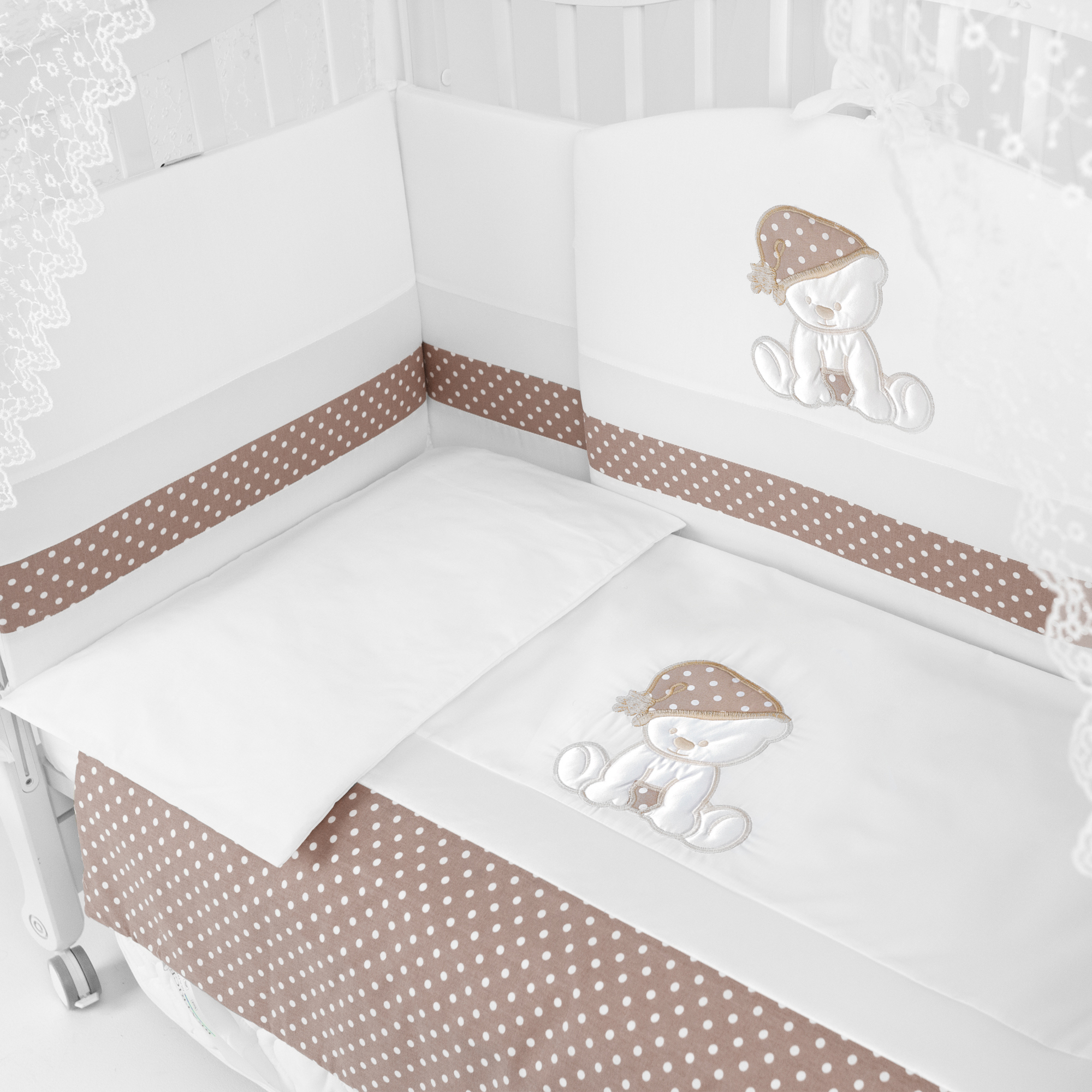 Beatrice Bambini Unico Cappa (125х65) позволит малышу качественно отдыхать в максимально комфортных условиях. Это позволяет сделать представленный набор детского постельного белья в кроватки с габаритными размерами 125х65 см. Мягкая структура натуральных тканей и швов, который очень приятны на ощупь, не будут раздражать и тревожить малыша. Украшает комплект милый медвежонок в спальном колпачке и не навязчивый горошек.