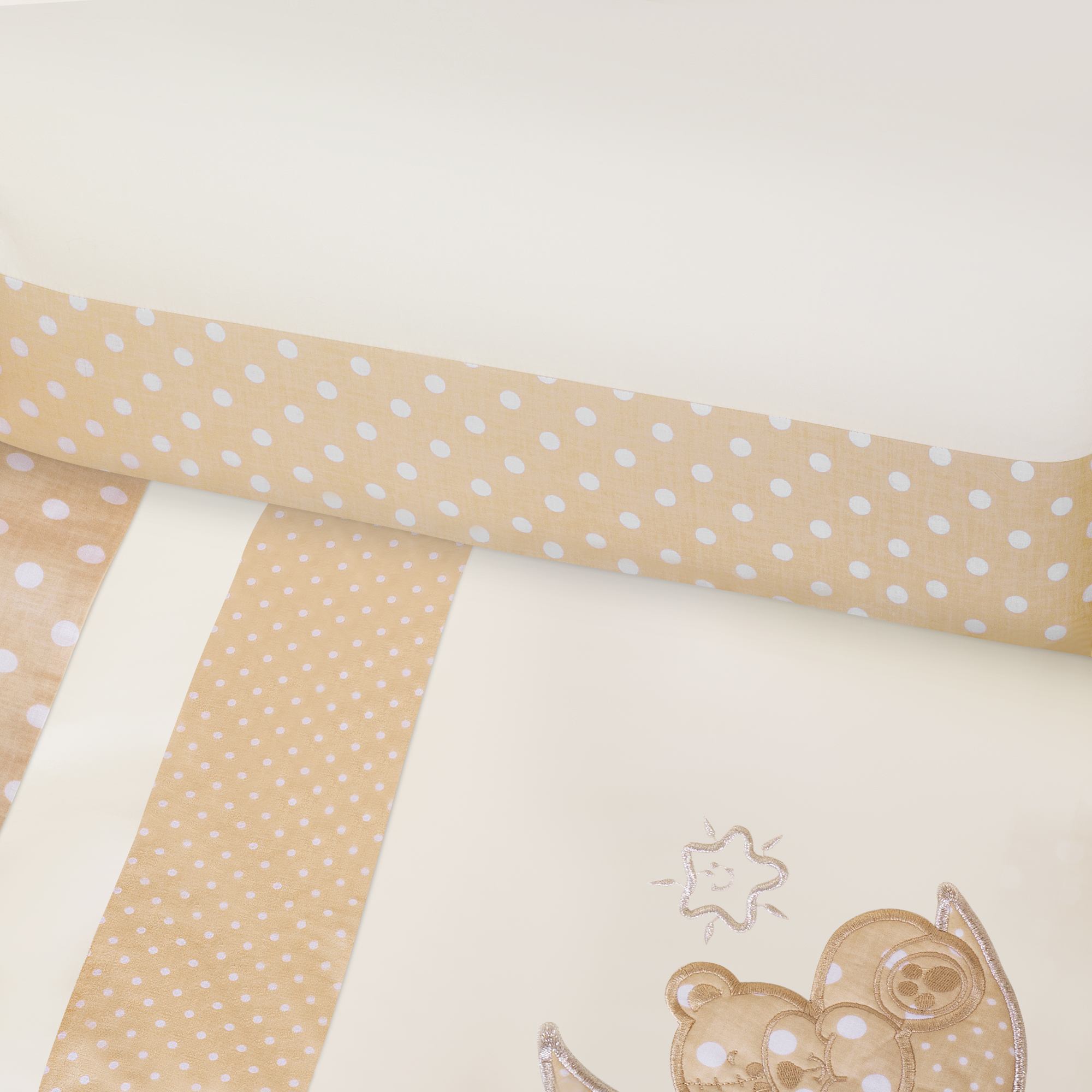 Комплект постельного белья Esspero Merry Moon обеспечит малышу крепкий и комфортный сон. Белье изготовлено из натуральных дышащих хлопковых тканей. Эргономическая подушка и теплое одеяло с наполнением из холлофайбера, который не теряет форму при многочисленных стирках, прослужат Вам и Вашему малышу долгие годы. Лаконичный и приятный дизайн с принтом в виде звездочек и спящего на луне медвежонка станут прекрасным украшением интерьера спальни родителей или детской комнаты.
