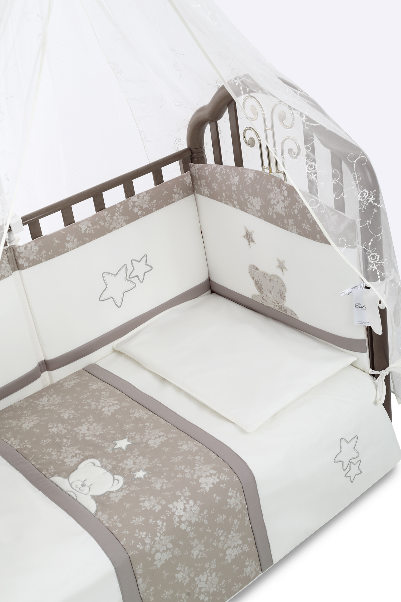 Комплект постельного белья Esspero Teddy Flowers выполнен из 100% мягкого нежного хлопка. Наполнитель белья - натуральное 100% волокно, которое добывается из зерна кукурузы и применяется для наполнения одеял. Этот материал имеет оптимальную воздухопроницаемость, лучшую, чем многие другие натуральные и синтетические материалы, а значит ребёнку будет исключительно удобно и уютно во время ночного и дневного сна. Комплект со съёмными деталями без труда можно выстирать в стиральной машине. Наполнитель не деформируется, так что комплект всегда будет иметь превосходный вид, даже после многочисленных стирок и глажек. Все материалы прошли необходимые тесты и считаются абсолютно безопасными, то есть, можно быть уверенным в том, что малышу будет комфортно в его кроватке на этом постельном белье.