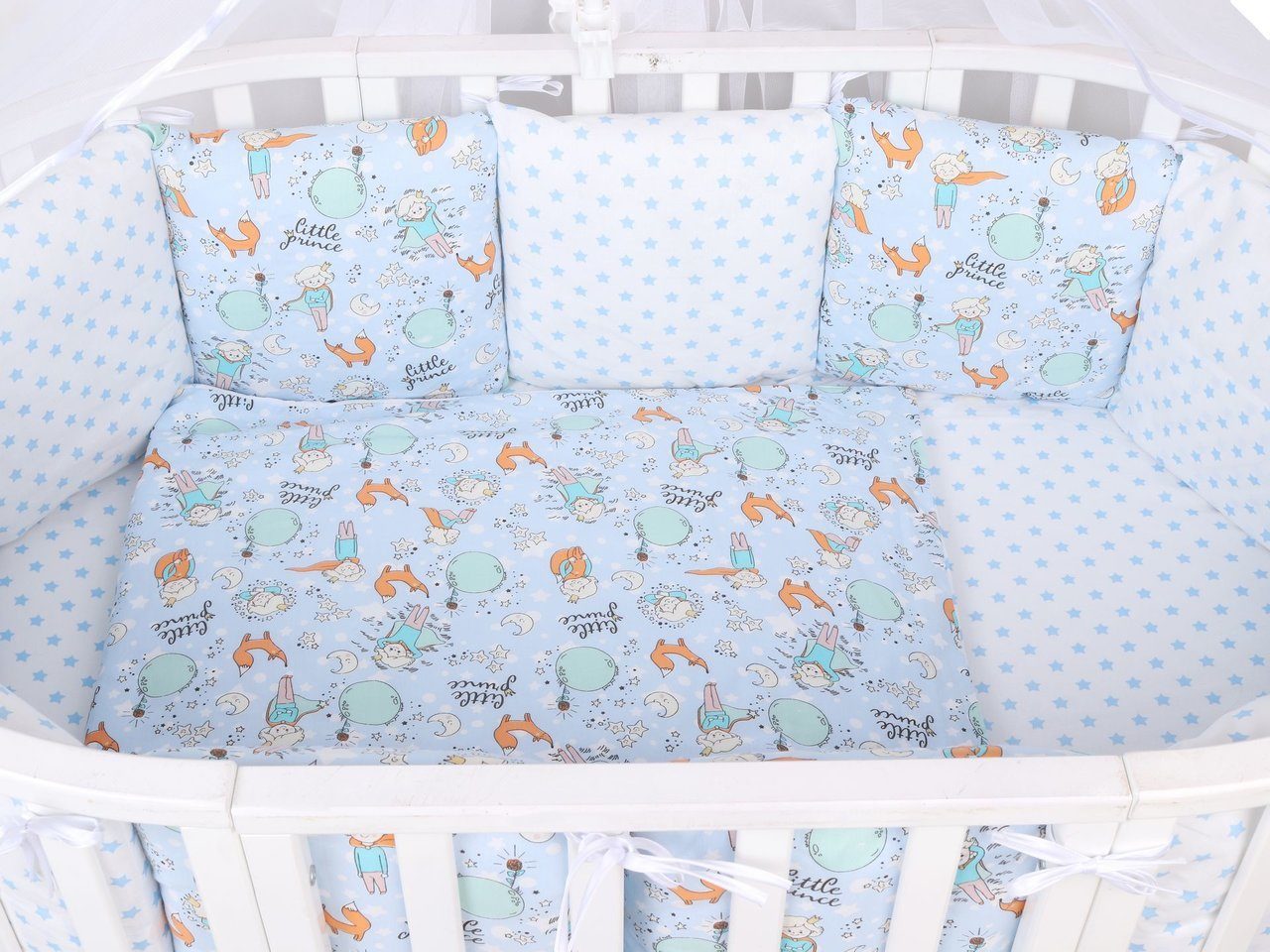 Комплект Premium в кроватку 18 предметов AmaroBaby Маленький принц – идеально подойдет для Вашего малыша. Производитель позаботился о натуральности, экологической чистоте и гипоаллергенности всех материалов. Для изготовления данного комплекта использовался только 100% натуральный хлопок премиального качества. Ткани устойчивы к частым стиркам, не линяют и долго сохраняют первоначальный внешний вид. Данный комплект получил очень милый декор из персонажей популярной детской сказки. Вы сможете увидеть маленького принца, одинокую розу и лисичку.