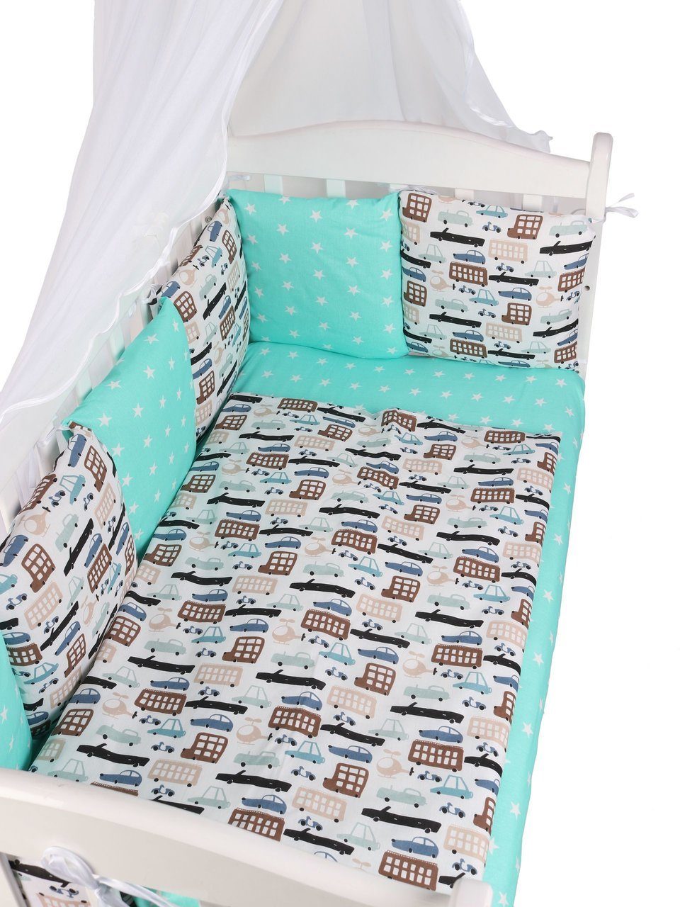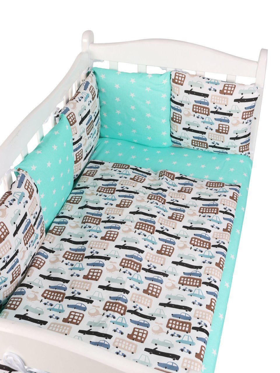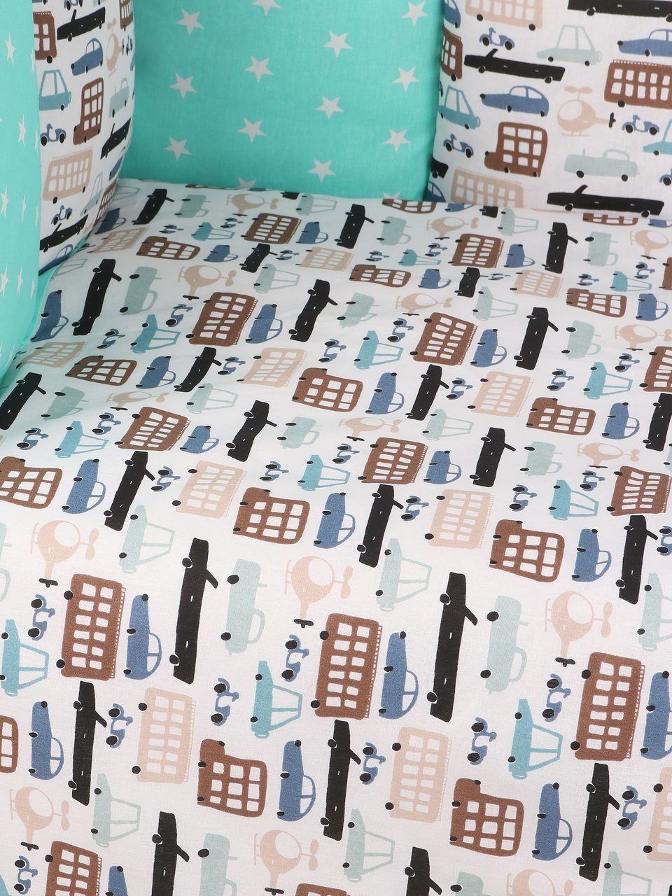 Комплект Premium в кроватку 18 предметов AmaroBaby Трасса – идеально подойдет для Вашего малыша. Производитель позаботился о натуральности, экологической чистоте и гипоаллергенности всех материалов. Для изготовления данного комплекта использовался только 100% натуральный хлопок премиального качества. Ткани устойчивы к частым стиркам, не линяют и долго сохраняют первоначальный внешний вид. Городской и автомобильный транспорт стали основой для декора в данном комплекте постельного белья.