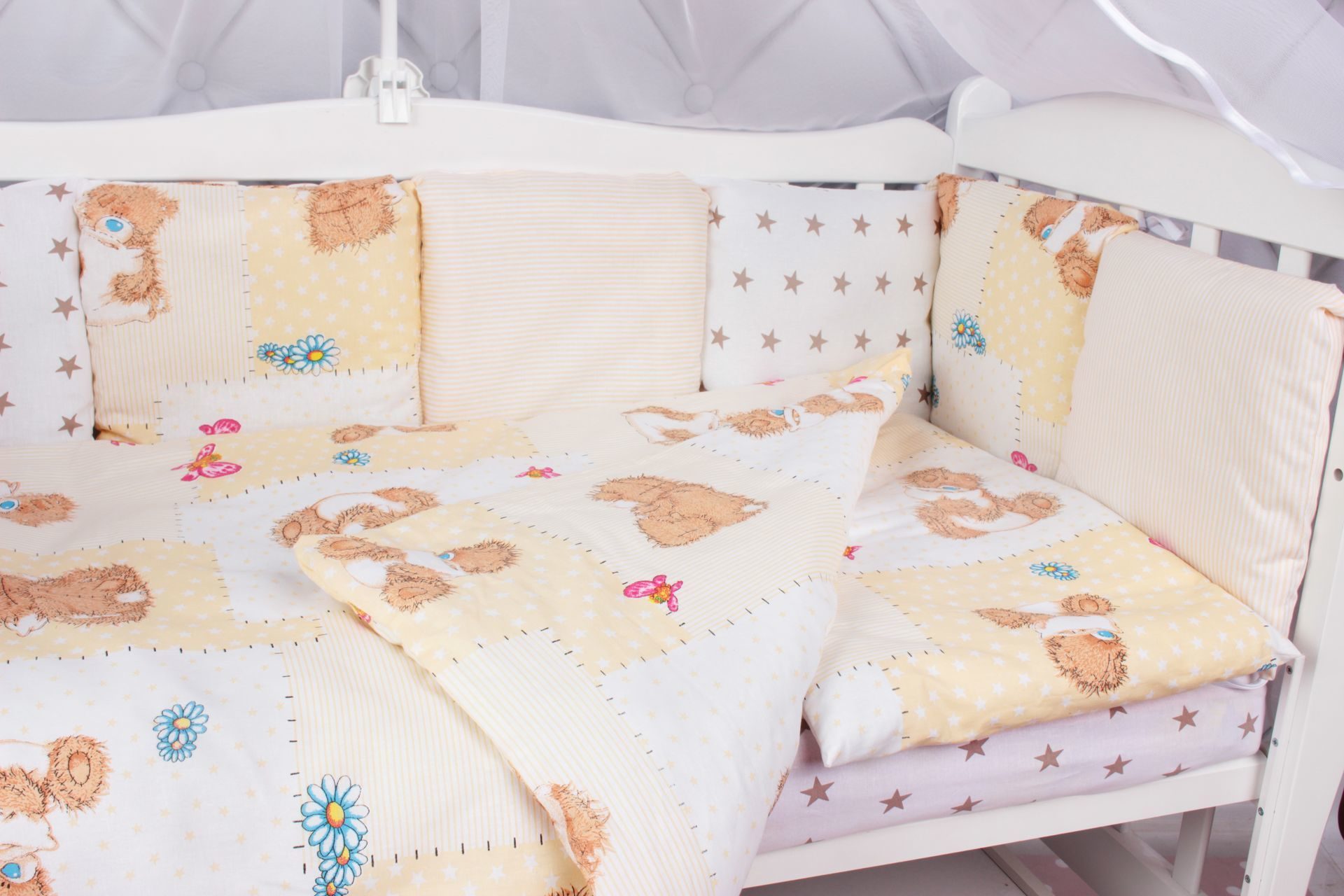 Комплект в кроватку 18 предметов AmaroBaby Мишка – идеально подойдет для Вашего малыша. Производитель позаботился о натуральности, экологической чистоте и гипоаллергенности всех материалов. Для изготовления данного комплекта использовался только 100% натуральный хлопок премиального качества. Ткани устойчивы к частым стиркам, не линяют и долго сохраняют первоначальный внешний вид. В данном комплекте постельного белья производитель использует очень стильный дизайн из серии мишки Тедди.