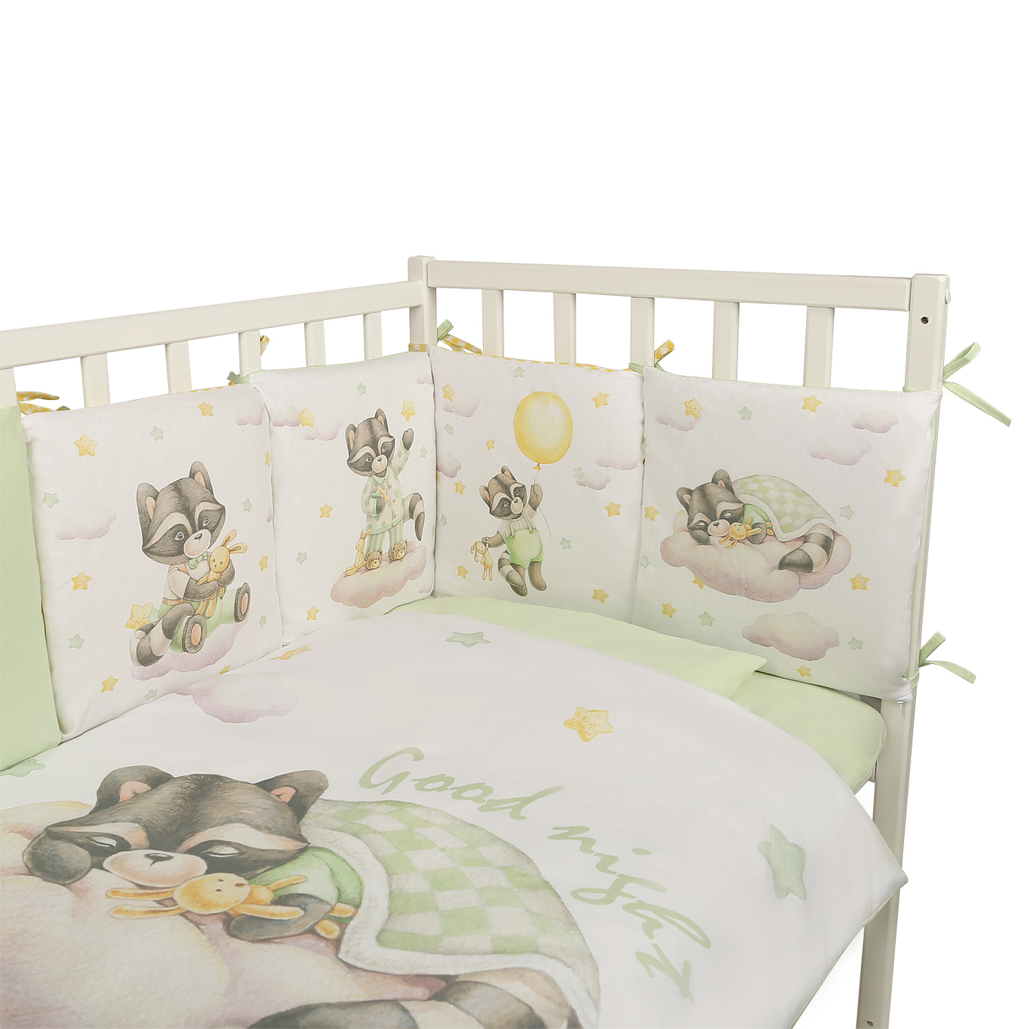 Комплект в кроватку ДОБРОЙ НОЧИ подходит как в кругло-овальную, так и в классическую детскую кроватку.