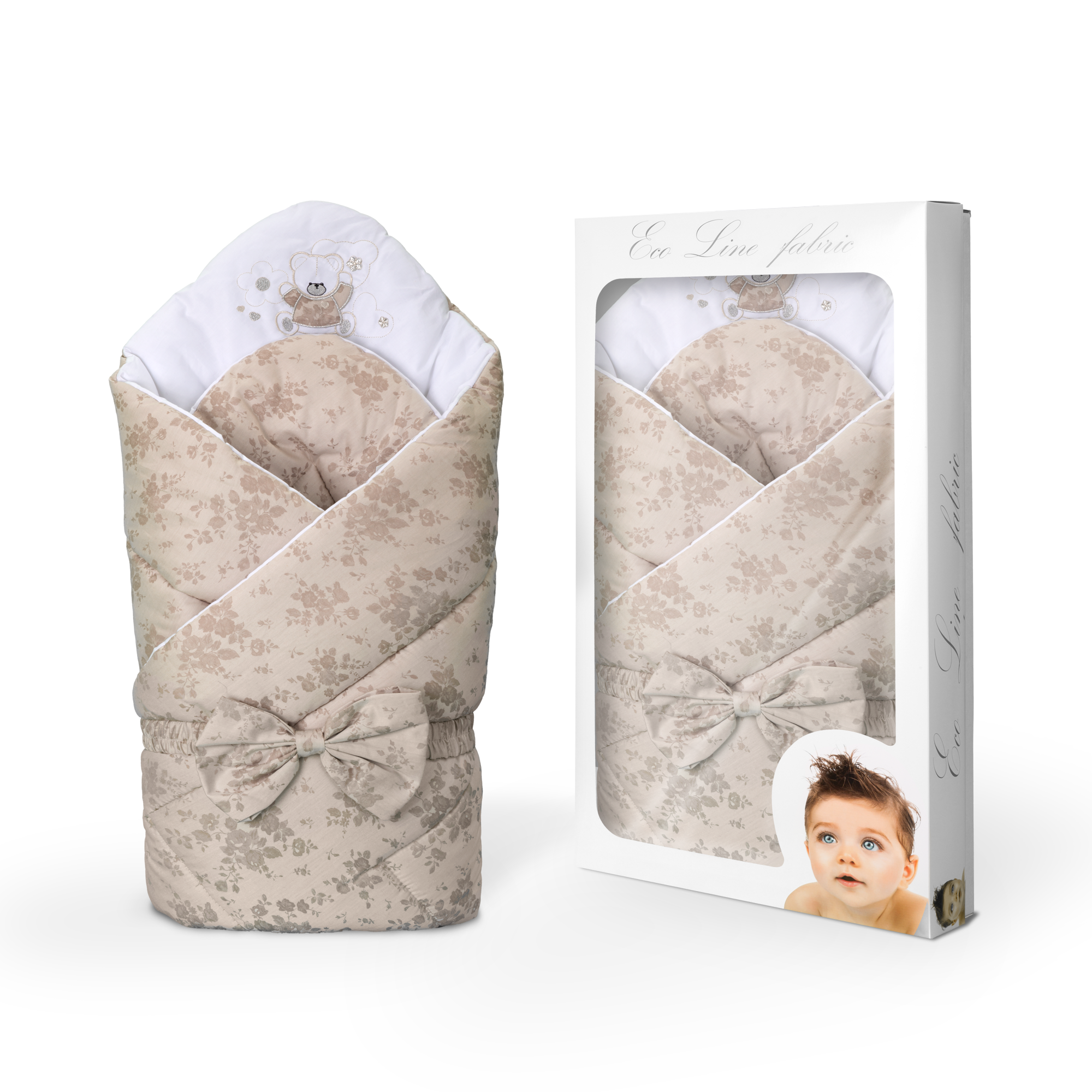 Конверт на выписку Eco Line Цветы станет прекрасным дополнением к торжеству выписки из роддома благодаря классическому дизайну с цветочным принтом (цветы выбиты на ткани), бантом и аппликацией в виде веселого мишки. Фиксируется при помощи эластичного пояса. Все использованные материалы прошли тщательную проверку на качество, экологичность и гипоаллергенность и соответствуют стандартам качества детских товаров ЕС. При разворачивании конверт траснформируется в одеяло. Сеточка, прикрывающая лицо малыша, снимается. Благодаря утеплителю можно использовать в любое время года.