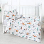 Комплект в очаровательном дизайне с забавными рисунками, которые прекрасно дополнят интерьер любой детской комнаты. Белье прочное и не электризуется, за ним легко ухаживать. Комплект выполнен из поплина - очень приятного материала для нежной кожи малыша. Имеет высокую износостойкость, поэтому вы можете быть уверены в том, что он прослужит вам долгое время. Универсальная простынь подойдет под любой классический матрас (120х60см).