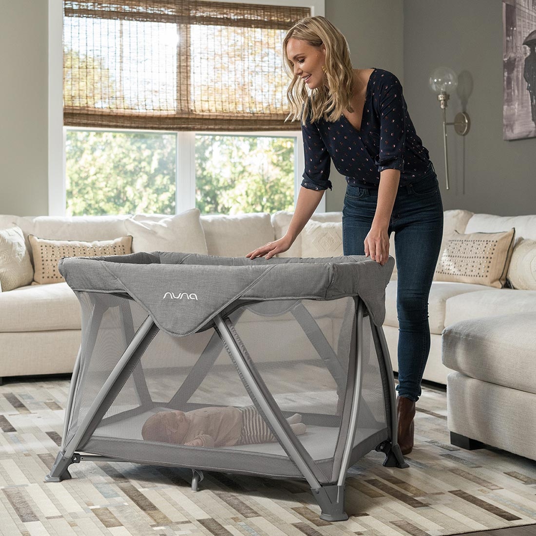 - Оберните матрасом уже сложенный манеж и поместите его в сумку для хранения
