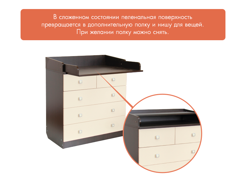 • Комод 1780 имеет откидную пеленальную поверхность с бортиками по бокам.