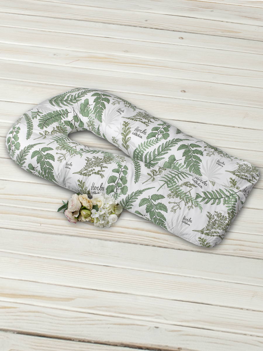 Подушка для беременных Amarobaby 340х35 U - образная Папоротники – это многофункциональное изделие для беременных и кормящих мам с потайной молнией. Наволочка изготавливается из плотной, натуральной бязи (125 г/м2), а внутренний чехол подушки имеет плотность (140 г/м2). В качестве наполнителя производитель использует безопасный и уникальный материал Файбер. Он прекрасно пропускает воздух и сохраняет тепло. Внешнее покрытие обладает хорошей износоустойчивостью к стиркам. Ветви папоротников в виде принтов стали украшением внешнего чехла к данной подушке.