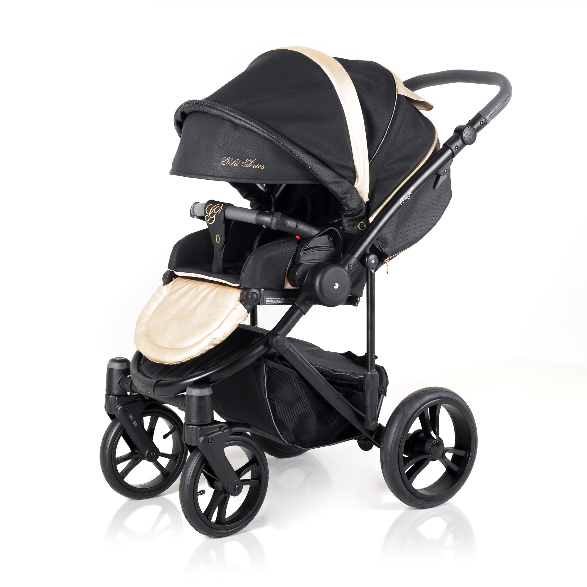 Прогулочная коляска Esspero Gold Series вышла в дизайнерской серии норвежского бренда, сочетает в себе безопасность и комфорт, является универсальным транспортом для поездок с ребёнком до 3-4 лет. Вместительные габариты и возможность отдохнуть на разложенном сидении в пути, большая проходимость шасси на больших колёсах, а также установка сидения в двух положениях, которые придутся кстати в разном возрасте, делают коляску данной модели высокофункциональной. Элегантная чёрная обивка сидения выполнена из практичной экокожи со вставками цвета благородного золота. Такая коляска, несмотря на свой уточнённый вид, как настоящая «рабочая лошадка» не боится морозов и влаги, не перегревается в жару, в общем – хорошо защищает ребёнка в любое время года и при любой погоде.