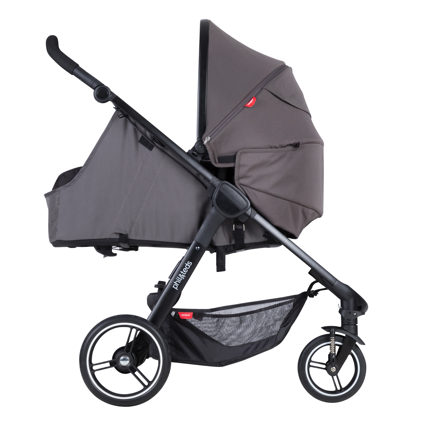 Прогулочная коляска Phil and Teds Smart 3 – усовершенствованная модель, которая появилась на рынке в 2016 году. Прогулочный блок оборудован широким капюшоном с дополнительной секцией на «молнии». Капюшон отлично закрывает от солнца или осадков, выполнен из двух слоёв, верхний – тканевый, нижний – из непромокаемого материала. Спинка сидения опускается до горизонтального положения, превращая коляску в спальное место. Выдвижная подножка увеличивает длину прогулочного блока, подстраиваясь под рост малыша. Пятиточечные ремни и съёмный поручень позаботятся о безопасности ребенка.