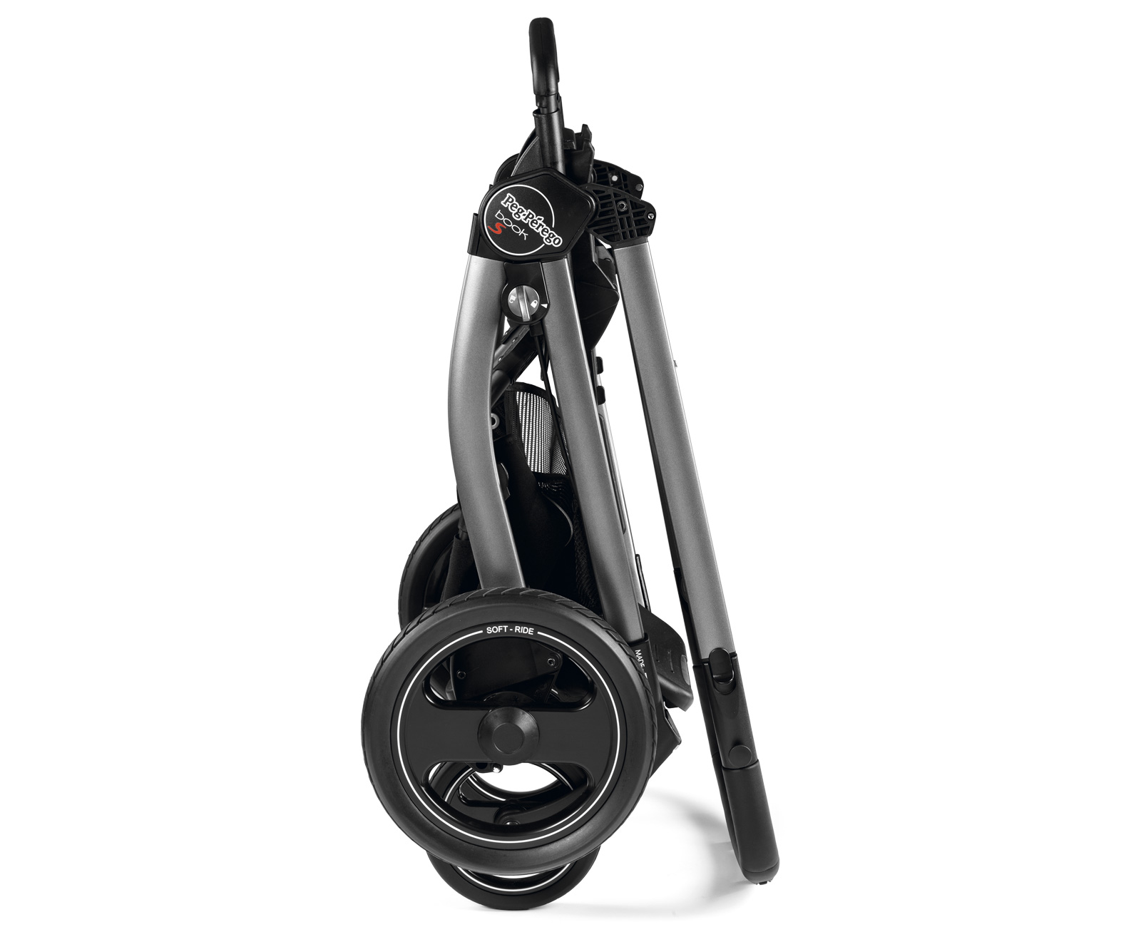 Шасси Peg Perego Book S с возможностью реверсивной установки удивительно универсальны и подходят для люлек Peg-Perego Culla, Young Navetta XL и Navetta Pop-Up, прогулочных сидений Switch и Pop-Up, а также автокресел группы 0+ Primo Viaggio Tri-Fix и Primo Viaggio SL. Таким образом, вы можете использовать их в качестве коляски для новорожденного, прогулочной коляски и коляски с автолюлькой, установленной на место прогулочного блока, для самых маленьких. Рама шасси шириной в 59 сантиметров входит почти в любой лифт. Передние колёса, поворачиваемые вокруг своей оси, для повышения маневренности, оснащены блокировкой в положении "прямо" для повышения проходимости на трудных поверхностях. Рычажок блокировки при этом расположен прямо на раме коляски сбоку, то есть, вам не придётся наклоняться и пачкать руки. Складываются шасси компактной книжкой.