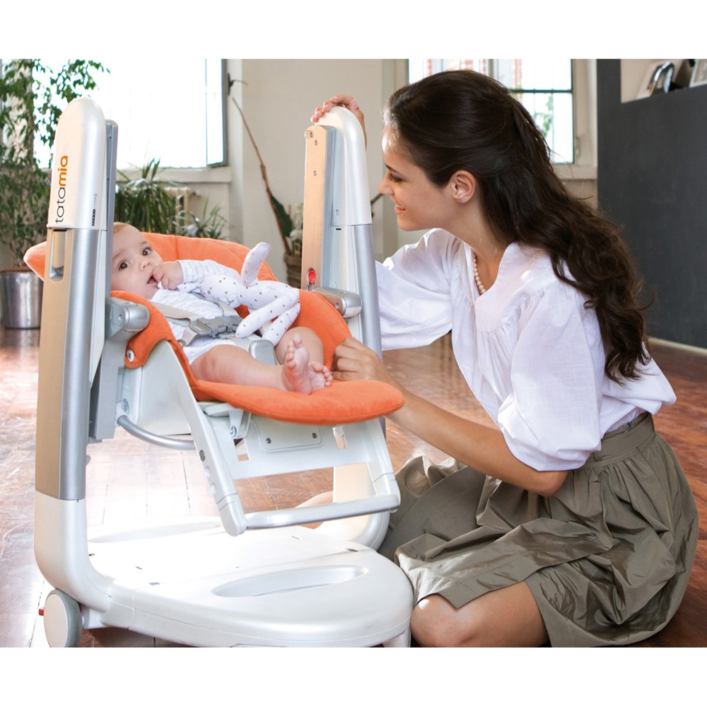 Стульчик для кормления Peg Perego Tatamia стал популярным всего за один год. Данный стульчик, спроектированный в дизайнерском бюро компании Peg Perego и изготовленный на итальянском заводе, компания представила в России в 2009 году и с тех пор он набирает все большую популярность. Стульчик оснащен всеми основными необходимыми функциями для стула класса 0+ и может стать отличным подарком от близких на радость его обладателям. Цветовые решения компании Peg Perego легко подойдут к Вашему интерьеру и будут гармонично смотреться на Вашей кухне. Стульчик используется для детей с самого рождения и до 3-5 лет. Стульчик с легкостью трансформируется в шезлонг и может и эксплуатироваться в отдельное от кормления время. Когда малыш подрастет и сможет самостоятельно залезать в стул - можете демонтировать ограничитель между ног для более удобной самостоятельной посадки. Удобный и многофункциональный стульчик для кормления просто необходим Вашему малышу - пока Вы заняты на кухне приготовлением еды, стульчик Пег Перего Татамия может послужить отличной площадкой для самостоятельной игры. Благодаря ремням безопасности и специальному ограничителю между ног, стульчик подойдет даже для очень подвижных детей, он имеет множество регулировок угла наклона спинки и регулировки высоты положения сидения, которые также позволяют использовать стульчик не только для кормления, но и для отдыха. Подножка регулируется в зависимости от роста ребенка. Вся продукция для детей обязана быть надежной и безопасной. К стульчику для кормления Tatamia предъявляются повышенные требования, не каждый малыш сможет долгое время сидеть спокойно. Именно поэтому он снабжен 5-ти точечными ремнями безопасности с регулировкой длины ремней, которые не позволят малышу выпасть из стульчика. Благодаря поворотным колесам, стульчик без труда перемещается по квартире. Стояночный тормоз установлен по умолчанию, а для того, чтобы снять стул с тормоза, надо нажать две серые клавиши на боковых опорах стула. Складывается стульчик легко и просто. Натянув два боковых фиксатора поднимаем нижнюю площадку с колесами, а при помощи задних регулировщиков высоты сидение отпускается для более компактного хранения.