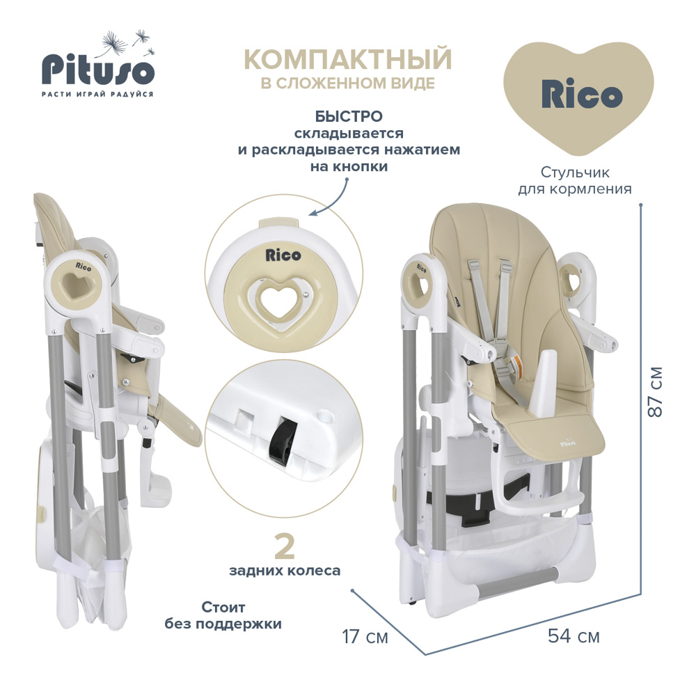 Стульчик для кормления Pituso RICO – сочетает в себе стильный дизайн и удобство в использование, делает уход за ребенком комфортным и безопасным.