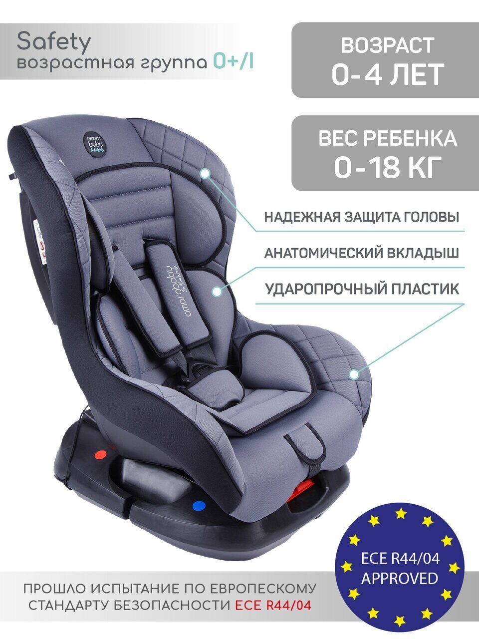Детское автокресло Safety от бренда Amarobaby – уникальная модель автокресла, которая обеспечивает безопасное перемещение вашего ребенка в автомобиле с самого рождения до 4 лет. Универсальное детское автокресло сочетает в себе самые современные требования безопасности к перевозке, а его конструкция с легкостью модифицируется под требования каждой возрастной (весовой) группы 0+/I. Анатомическая форма сидения и система наклона кресла обеспечивают оптимальное положение ребенка в автокресле в соответствии с возрастом.