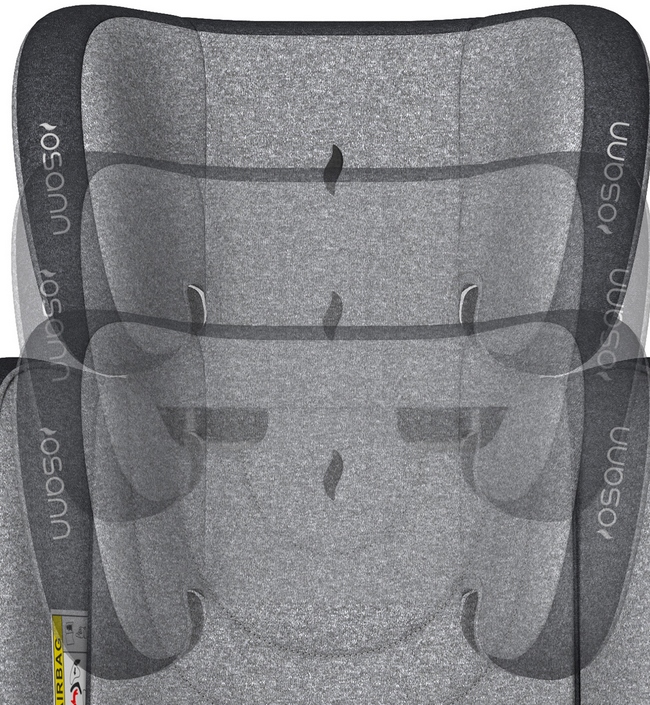 подголовник регулируется по высоте в 10 положениях вместе с 5-точечными ремнями