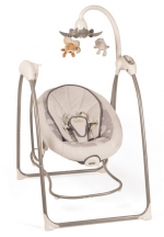При необходимости можно снять сидение с качелей и установить на полозья - получится шезлонг с функцией качания, который легко перемещать по квартире или даже брать с собой в путешествие - у ребенка всегда будет знакомое и комфортное место, даже в незнакомой обстановке он будет чувствовать себя увереннее. Шезлонг можно зафиксировать с помощью стопоров и "отключить" функцию укачивания.