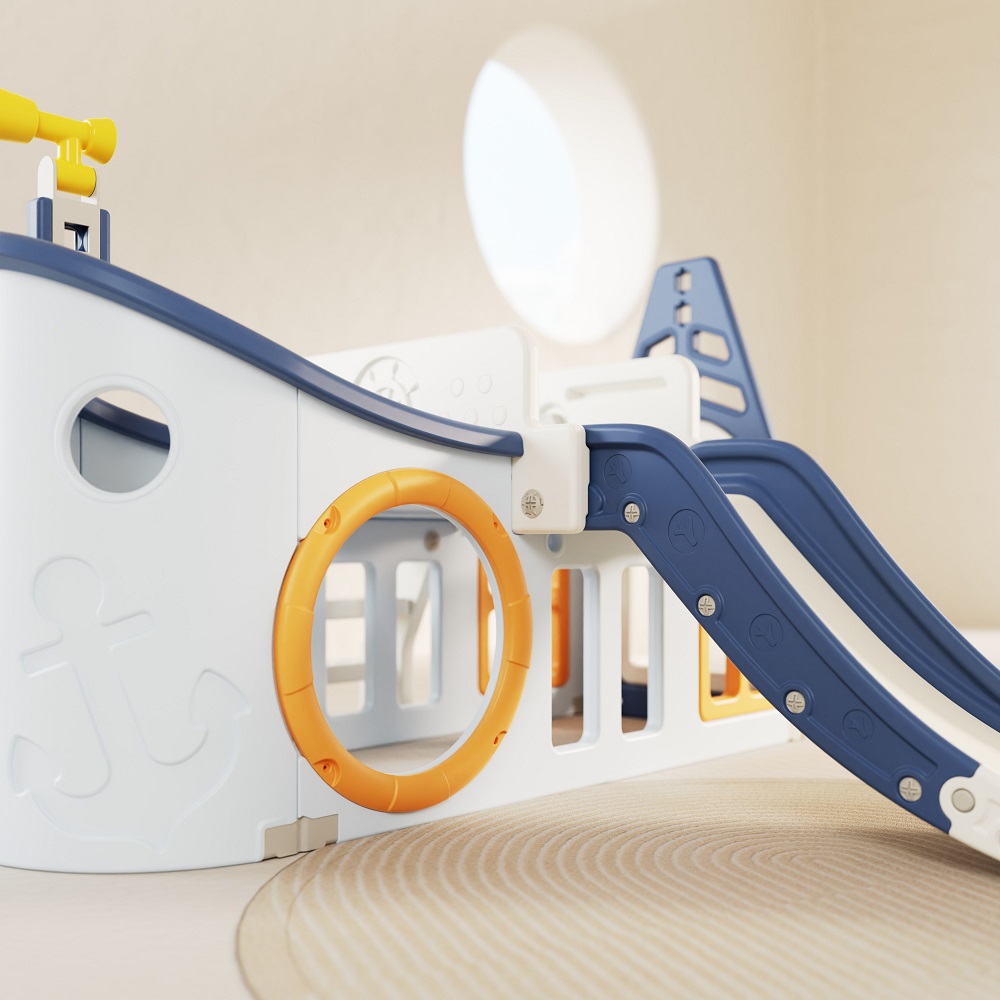 Игровой комплекс для детей с горкой UNIX Kids Pirate - совершенное сочетание развлечения, активности и безопасности! Это целый корабль призванный вдохновить и весело провести время Вашего малыша, предоставляя ему уникальную возможность исследовать, развиваться и играть.<br/><br/>Детский игровой комплекс включает в себя игровое трюмо, горку, дверь, подзорную трубу и баскетбольное кольцо.<br/><br/>Безопасность Вашего ребенка наша главная забота. Все детали игрового модуля с горкой и лазалками изготовлены из пищевого пластика 4-го класса — согласно классификации ГОСТ, гипоаллергенного и абсолютно безвредного даже для самых маленьких пользователей. Игровой комплекс оснащен устойчивой конструкцией и безопасными закругленными элементами без острых углов, чтобы предотвратить любые возможные травмы. Мы уделяем внимание каждой детали, чтобы не только защитить маленького исследователя, но и обеспечить ему комфортную поверхность для игры и движения.<br/><br/>Игровой комплекс для детей стимулирует активное движение, координацию, силу и баланс, помогая детям развить свои потенциалы и навыки. С детским комплексом с горкой, малыш будет весело проводить время, а также развивать фантазию! <br/><br/>Детский комплекс игровой легко устанавливается как в доме, так и на улице. Игровой комплекс для дома занимает минимум места и благодаря стильным цветам легко сочетается с различными интерьерами. <br/><br/>Подарите своим малышам незабываемые моменты радости и веселья с игровым детским комплексом с горкой для дома и улицы!