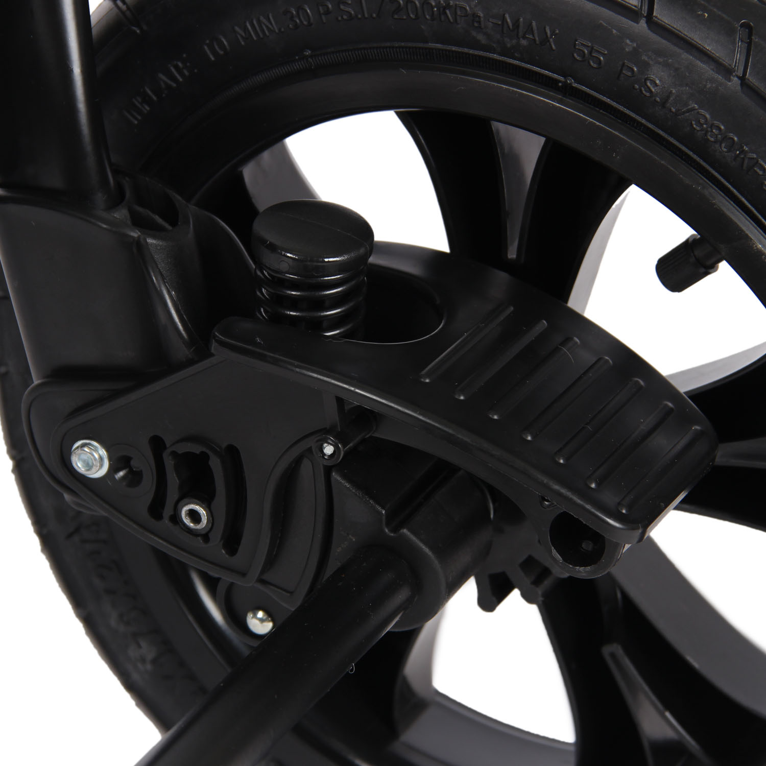• Большие надувные колеса позволяют легко преодолевать неровности дороги, а регулируемая амортизация обеспечивает плавный ход. Это особенно важно для малышей, которые еще не могут самостоятельно сидеть.