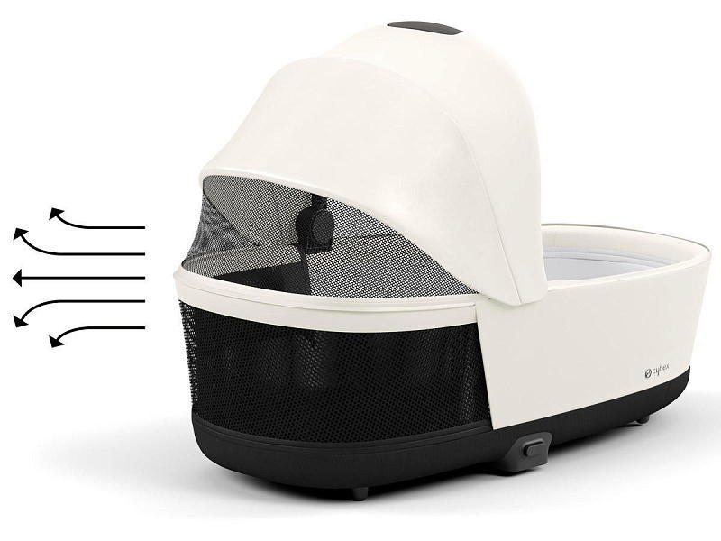 Основным отличием наличия люльки (спального блока) Priam Lux Carry Cot предыдущих моделей, является дополнительная кармашка на застежке боковой люльки, а также измененная система установки спального блока на шасси. Люлька настроена на адаптеры, которые подходят и для автокресла Cybex. Внутри люльки находится мягкий матрасик, который запоминает положение малыша. Матрасы, изготовленные из ортопедической пены, обладают хорошим уровнем долговечности. Его подкладка также изготовлена ​​на 100% исправна. Всё это обеспечивает максимальный комфорт и отличную воздухопроницаемость для вашего ребёнка. Люлька (спальный блок) оборудована защитным капюшоном, который может раскладываться и регулироваться в зависимости от требований. При изготовлении люльки использовались безопасные материалы, протестированные в соответствии с устойчивыми стандартами. Для того, чтобы родителям было удобно следить за состоянием ребенка, в капюшоне сделано специальное окошко. Кроме того, это окошко обеспечивает функцию вентиляции во время прогулок в жаркое время года, при желании окошко можно закрыть.