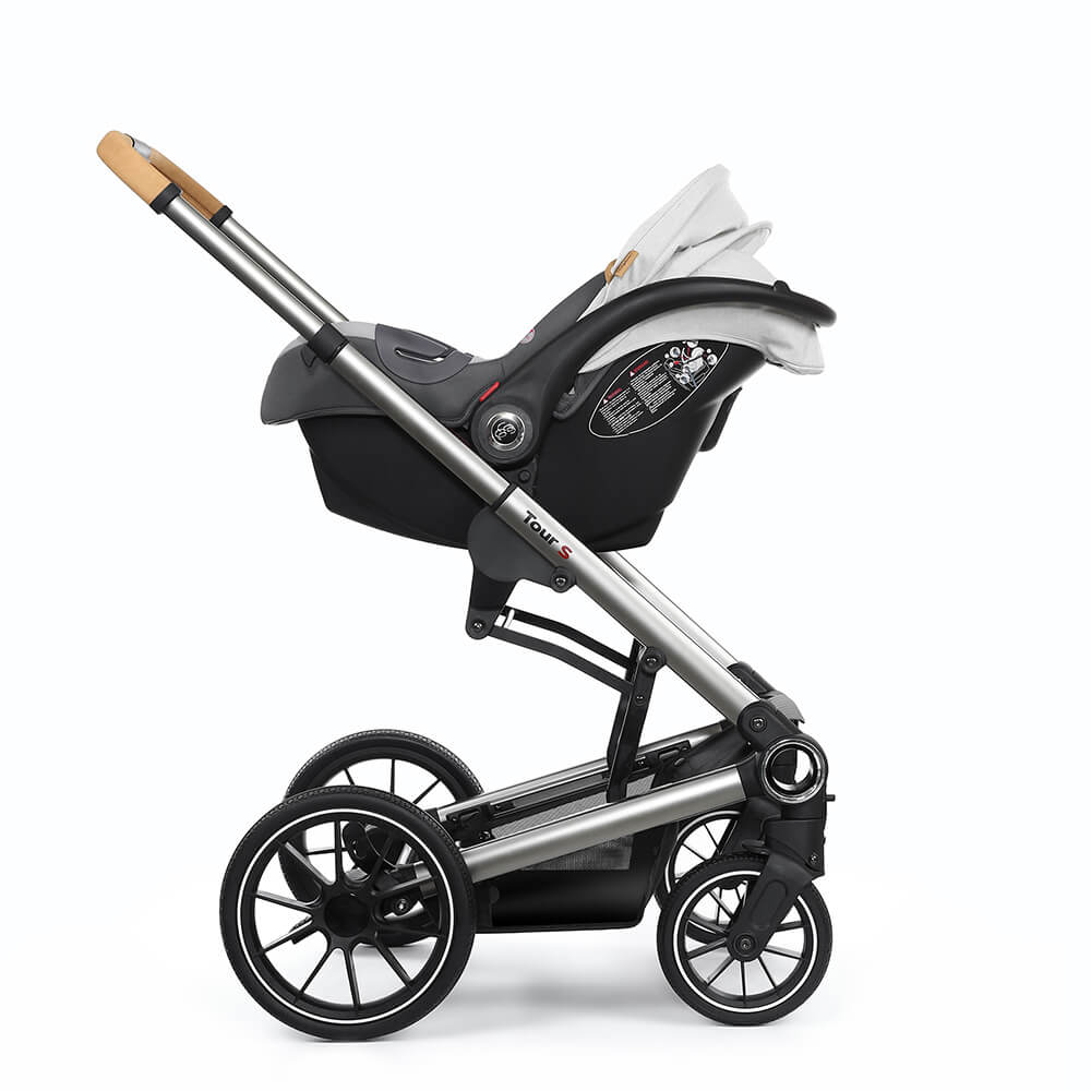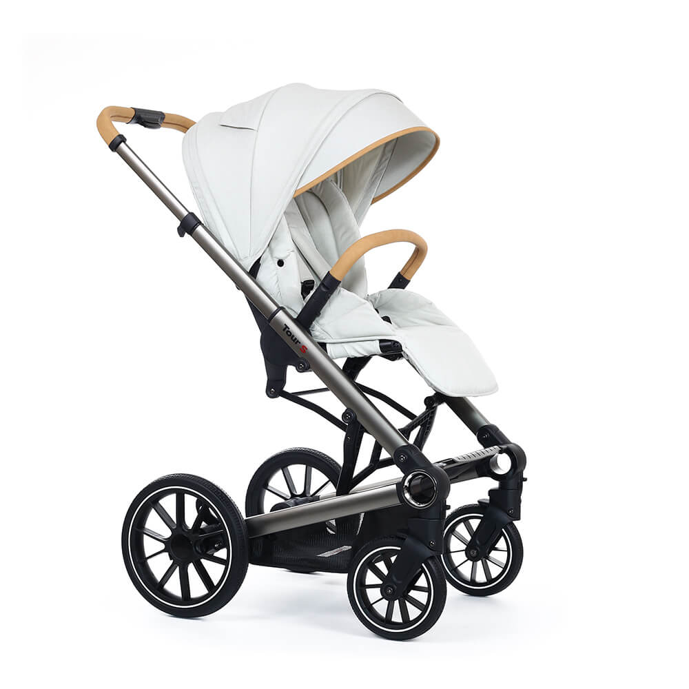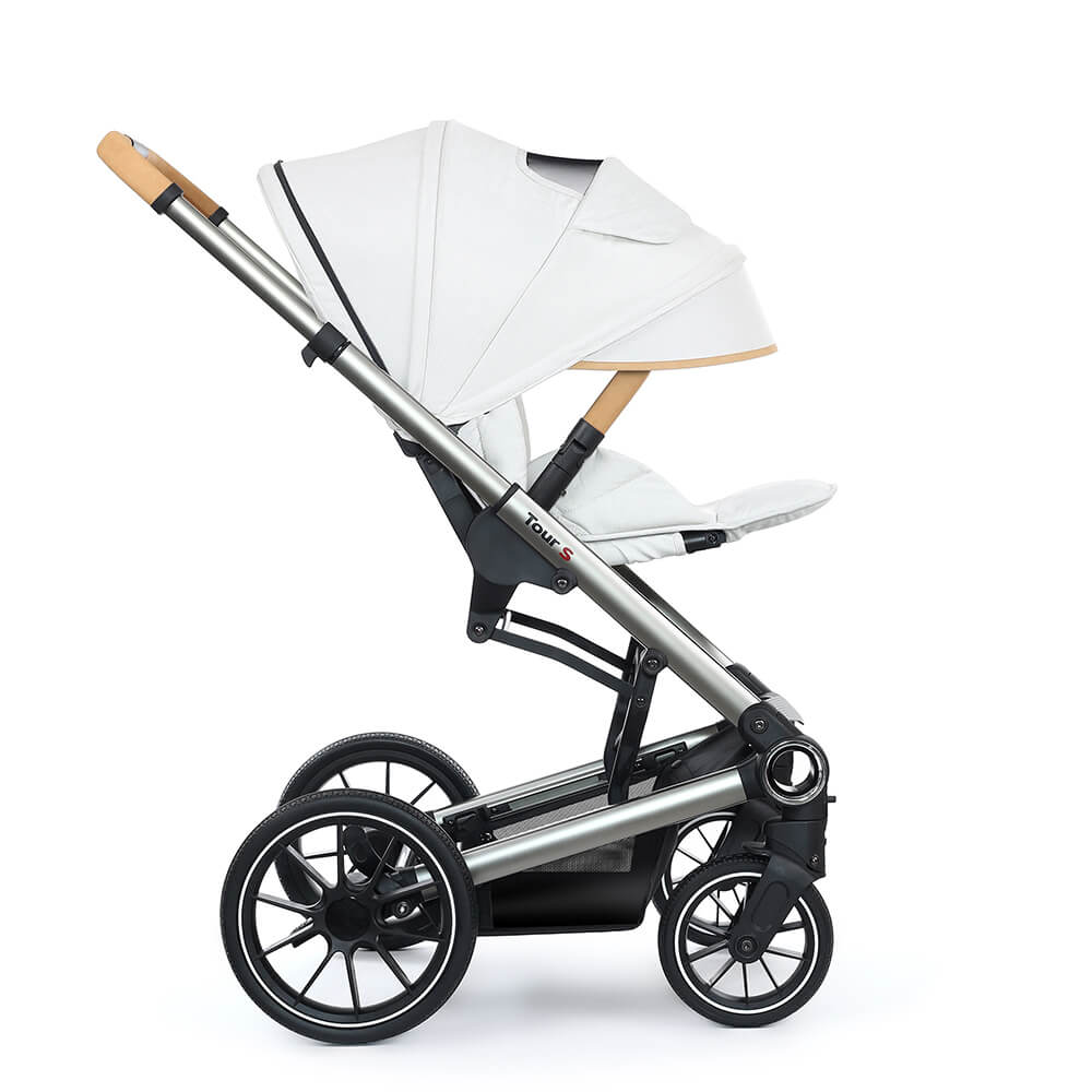 Коляска 3 в 1 Esspero Tour S – это инновации и стиль в рамках новой модульной системы 2020 года. Высокопрочное и устойчивое шасси из авиационного алюминия позволяют устанавливать одним движением любой из входящих в комплект модулей. Телескопическая ручка с обивкой из эко-кожи регулируется по высоте. Шасси складывается книгой и принимает компактные габариты для хранения или перевозки в автомобиле. Все колеса оснащаются пружинной амортизацией и подшипниками для увеличения маневренности и проходимости коляски. Дополнительный протектор на колесах дает возможность совершать прогулки на любом дорожном покрытии. Передняя пара колес является поворотной и может фиксироваться в одном направлении. Имеется надежный ножной тормоз. В нижней части шасси располагается съемная тканевая корзина.