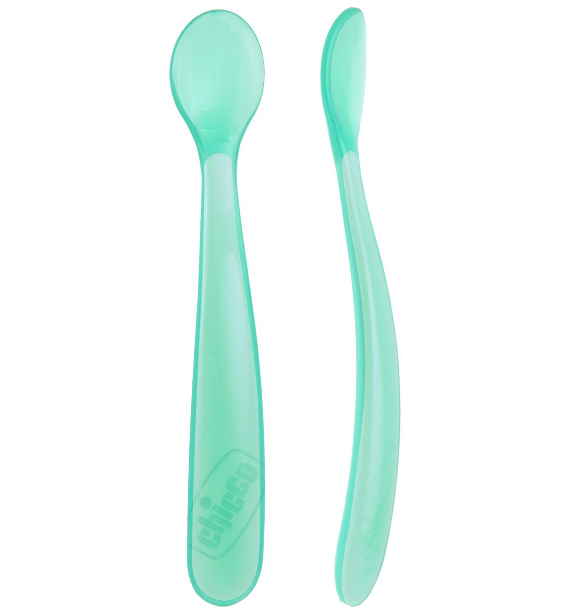 Ложка Chicco мягкая, силиконовая, 6+ мес, 2 шт - голубой