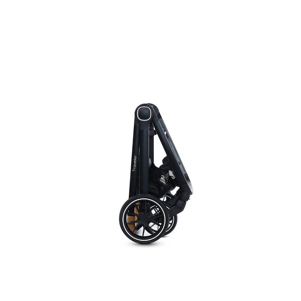 Прогулочная коляска Esspero Traveler – модульная коляска повышенного уровня комфорта для малышей от полугода. Базой для коляски послужило прочное шасси из авиационного алюминия, которое позволяет устанавливать все съемные модули легко и реверсивно. При необходимости оно складывается в компактную книгу, а телескопическая ручка поможет уменьшить габариты. Колеса оснащены амортизацией и шарикоподшипниками, что позволяет управлять коляской при помощи одной руки. Передняя пара колес является поворотной и может фиксироваться в одном положении. Ножная тормозная система надежно зафиксирует коляску даже на наклонной поверхности. В нижней части шасси расположена вместительная грузовая корзина.